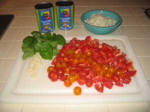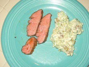 Well that title certainly sounds fancy and complicated doesn’t it, but it’s not really. It is also less of a planned meal and more of a “we have this in the refrigerator and I have a craving for that” meal.