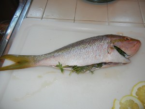 The first step is to acquire the fish. The advice I always see in cooking magazines and online is that “the fish should look and smell fresh”. Great, what exactly does that mean? Well, the eyes should be clear, not cloudy, and it should look firm not “old”. But the best test is the smell. Remember it will still smell like fish, but it should not smell like fish that has been sitting in the trash can overnight. I’m sure you can imagine that smell. And of course there are lots of variations in between. I find it best to go with you gut. If it looks and smells good, go for it.