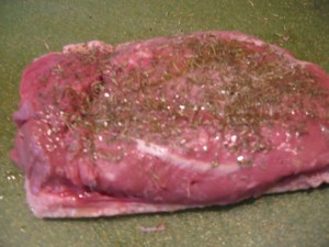 I pull some herbs from the garden, usually some mixture of oregano, thyme, marjoram, savory, tarragon, etc. Nothing really strongly flavored. I rinse and dry the herbs, then stuff them inside the fish cavity (where the plumbing used to be).