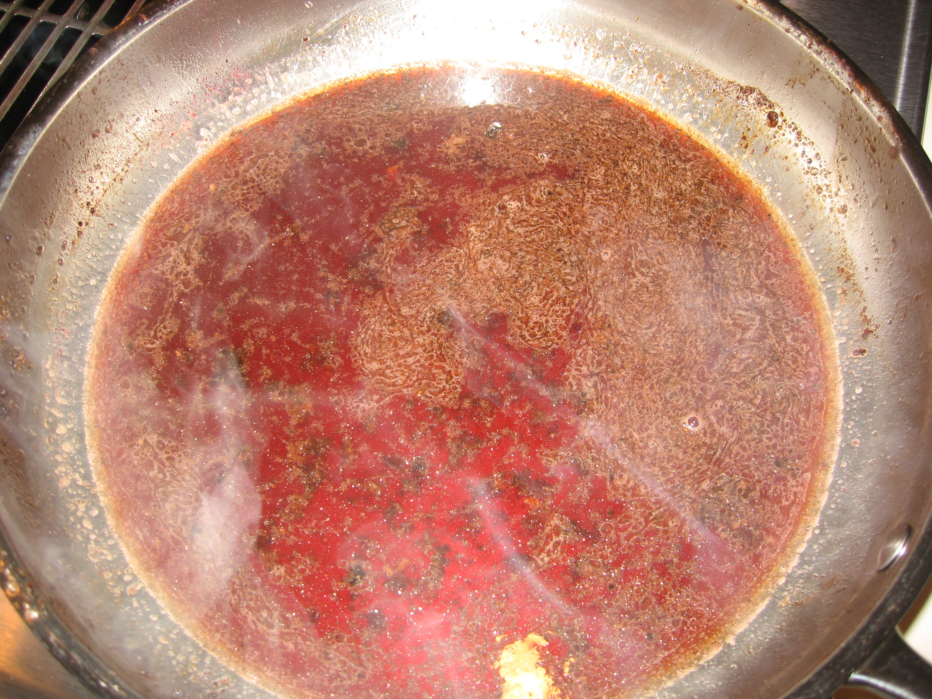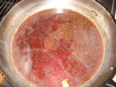 The wine / balsamic juice was terrible.  Adding the Hibiscus Powder made the sauce gritty and gave it an unpleasant sour flavor.  We decided to abandon the sauce and remake a wine / balsamic reduction.  It didn’t have much of the duck drippings however, so it lacked a lot of the richness I was expecting.